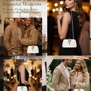 Features: Elegant glitter clutch perfect for evening events, with a sculpted silhouette and a button closure. Comes with both a short and long removable chain so you can carry it as a handheld, shoulder, or crossbody bag. Compact yet holds essentials like your phone, lipstick, and keys, making it ideal for weddings, parties, and date nights.