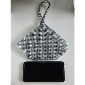 ✨ With a unique design and shimmering construction, this wristlet upgrades any evening look.