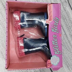 Glitter Girls Doll Boots Blue Glitter Pink Knit Trim Shoes Fits 14 Inch Dolls