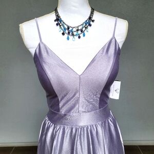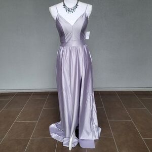 Glitter Lavender Satin Gown ✦ A‑Line High Slit Formal Prom Dress Pocket Sz 3 NWT