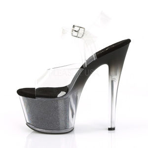 7" High Heel, 2 3/4" Platform Glitter Clear Transparent Shoes. Ombre Tinted Heeled Featuring Glittered Inserts in the Bottom.