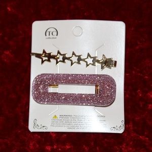 2-Pink/Gold Glitter Resin & Stars Barrettes