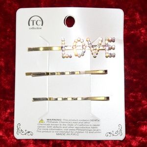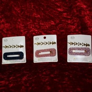 ~2-Piece Glitter Resin & Stars Barrettes 3-Piece Rhinestone "Love" Hair Pin Set~