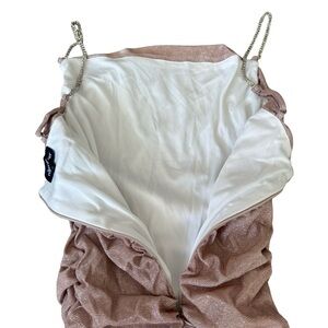 Glitter Ruched Bodycon Mini Dress Rhinestone Strap Champagne Small