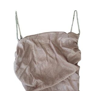 Glitter Ruched Bodycon Mini Dress Rhinestone Strap Champagne XSmall