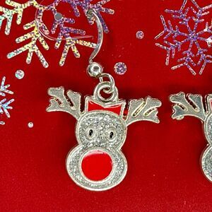 Glitter Rudolph Reindeer Christmas Dangle Earrings Pierced Pair