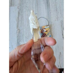 Glitter Santa icicle sign ornament father vintage style Xmas tree