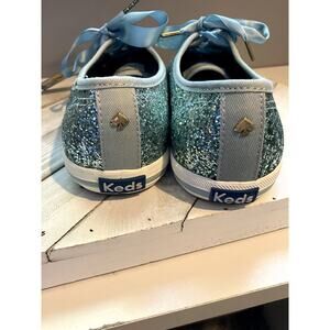 Step out in style with these Kate Spade sneakers, featuring a vibrant blue glitter finish. The classic lace-up design and comfortable rubber sole make them perfect for everyday wear. Add a touch of glamour to your casual outfits with these eye-catching shoes.