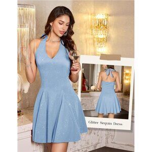 Glitter Sparkle V Neck Cocktail Dress for Women Blue