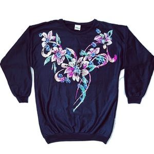Unworn vintage sweatshirt with handpainted flowers and gold accents. Size M. 100% acrylic. In NWOT vintage condition.