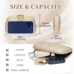 Features: Elegant clutch with a chic gold snake-accent buckle, includes a detachable shoulder strap for versatile styling. Can be used as a clutch, shoulder bag, or crossbody, making it super practical for parties, weddings, or date nights. Compact enough to hold essentials like lipstick, mirror, and small phone, but stylish enough to elevate your outfit.