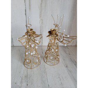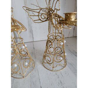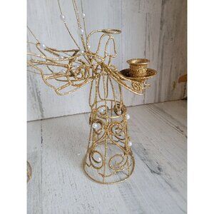Glitter golden angel candlestick holder Xmas religious set decor