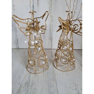 Glitter Gold Wire Angels Frame Beaded pearl accents Gold Tone Metal Wire Christmas Angel Figurine Tree Ornaments