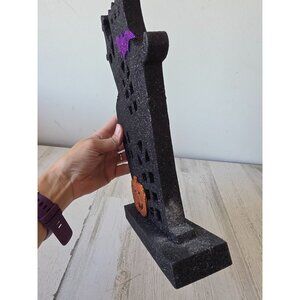 Glitter haunted house Halloween decor pumpkin bat sparkle black