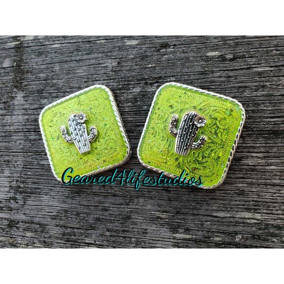Glitter lime green cactus tack, cactus concho, custom conchos, screwback concho
