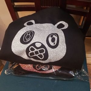 Glitter Panda Face Streetwear Hoodie NWOT Sz.M Oversized CHOOSE PINK OR SILVER