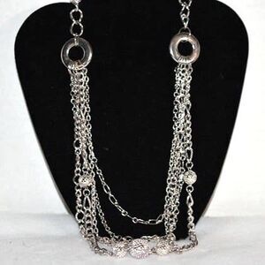 Glittering Filigree Covered Beads Silver Tone 4 Strand Link Glam Chain Necklace Lobster Claw Clasp Like New