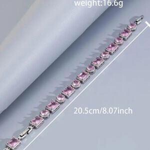 Glittering Pink Zircon 8 inch Bracelet - Exquisite Round Square Design