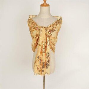 Glittering Scarf Mesh Sequin for Wedding Gold