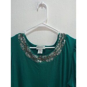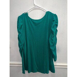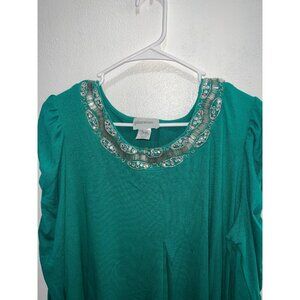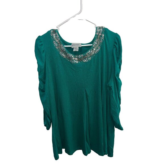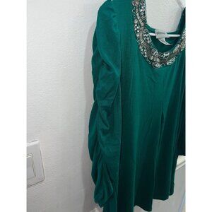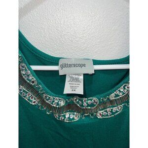 Glitterscape womans top plus size 2X green round sequin neckline ruched pullover