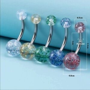 Glittery Colorful Summer Bellybutton Ball Ring Set