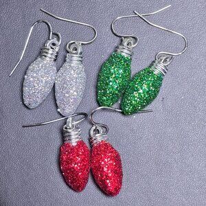 Glittery Holiday Light Bulb Earrings Set of 3 (NWOT)