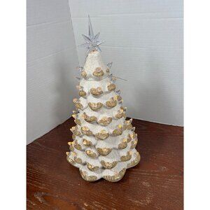 Glittery White & Gold Ceramic Lighted Christmas Tree With LED Lights & Star Topp