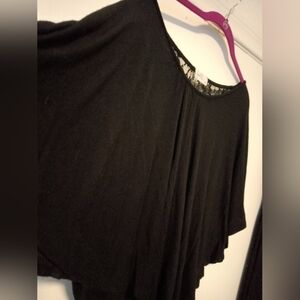 Glitz Black Short Dolman Sleeve Lace Back Top