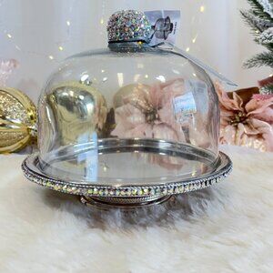 Glitz Chrystals Footed CAKE PASTRY KEEPER Glass Dome Serving Stand Jeweled New