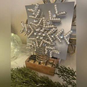 **Glitz + Glimmer Pearl Snowflake Holiday Tree Topper** the gray part is cardboard from the box you can remove.