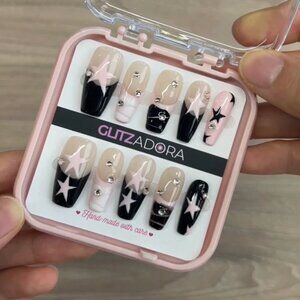 GlitzAdora bundle Nails Black Pink Star (1) & Stellar Silhouette (1)