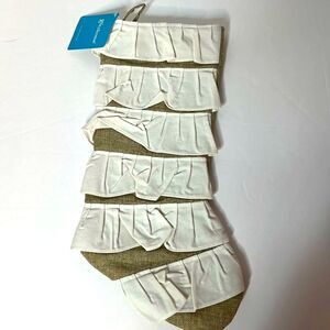 Glitzhome Set of 2 Burlap Jute and Ruffle Farmhouse Christmas Stockings NEW!