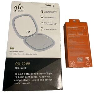 Bundle: Glo Tech LED Compact Mirror USB & 10X MAG 3 Light Settings White AND Onn 8000 mAh for Apple, Samsung & gadgets (tech mirror). More information in the photos.
