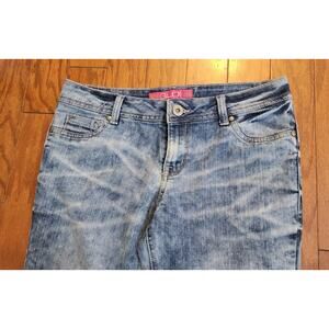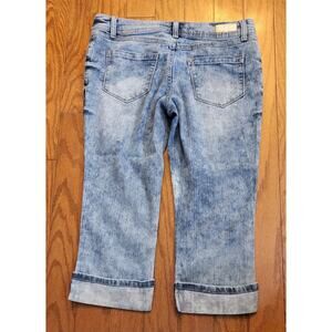 Glo Women Juniors Size 11 Blue Capri Cuffed Light Wash Distressed Stretch Jeans