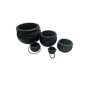GloCamping 5ct Halloween Plastic Black Cauldrons With Rope Handles Large-Small