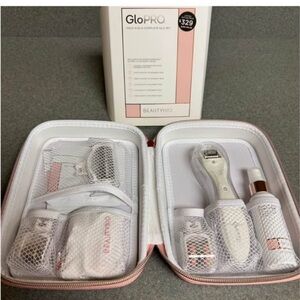 Experience radiant skin with the GloPRO Pack N'Glo Complete Set. This pink skincare tool set includes five interchangeable attachment heads for a complete facial rejuvenation routine.