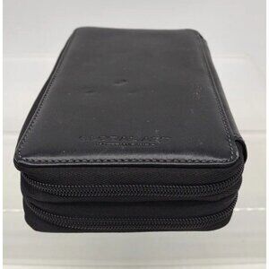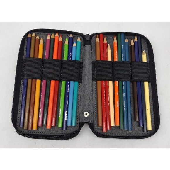 Global Art Leather 48 Pencil Marker Storage Case Zipper Black with used Prismacolor Pencils. Small dents in leather.