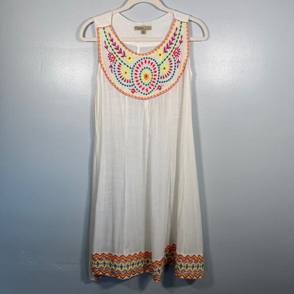Global Desi Boho Neon Embroidered White Shift Dress XXL Made in India