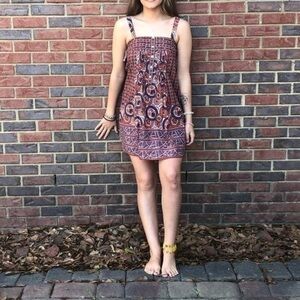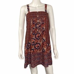 Global Desi NEW Sleeveless Red Blue Boho Print Dress Lightweight Summer Dress M