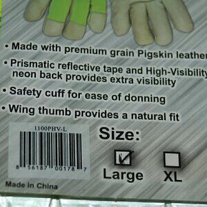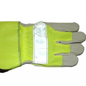 NEW Pair of Global Glove 1100PHV High Visibility Pigskin Neon Safety Cuff Reflective Sz L