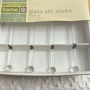 Never used glass stir sticks. Still in original box from 2006 Target Collection.
