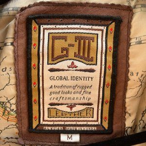 Global Identity G-III Leather Jacket- Size Medium- Excellent Condition. Thick leather jacket perfect for cold mornings, hikes in the mountains, or drinks by the campfire. Super soft lining will keep you comfortable and warm in those winter climates. Plenty of pocket space, perfect for traveling, camping, hiking, and so much more. Just like new condition.