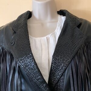 Global Identity fringe leather jacket. Fringe on both sleeves and front to back. All snaps intact and working. Lots of interesting detail on the leather. Dress available separately