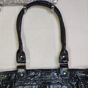 Global New Beginnings Black Faux Snake Double Snap Zip Pockets Large Tote Bag