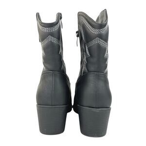 Global Win Black Faux Leather Stitch Embroidered Mid Calf Western Cowboy Boots 8
