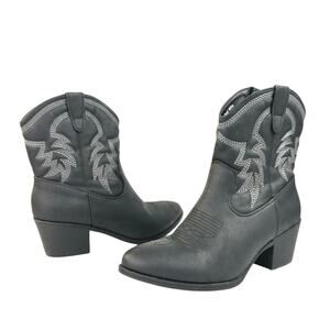 Global Win Black Faux Leather Stitch Embroidered Mid Calf Slip On Western Cowboy Boots Size 8