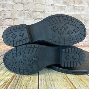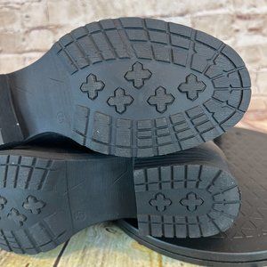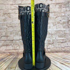 Global Win Quilted Black Buckle Side Zip Harness Block Heel Riding Boots 7.5