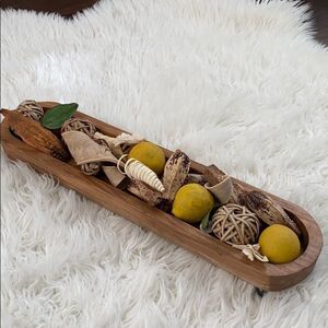 NWT Rectangular chunky wood container for styling with greenery, balls, or food. In new condition.