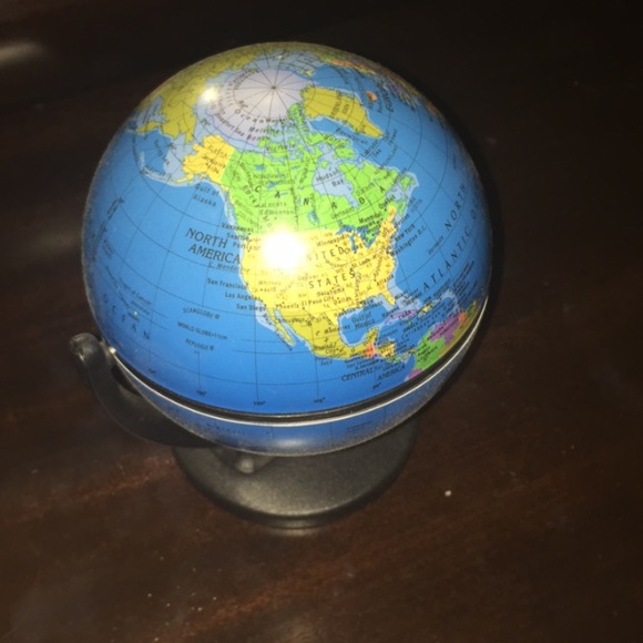 How small/large is this globe? Is it a bank? Does it spin? Is it made of metal? Thanks.