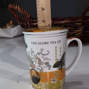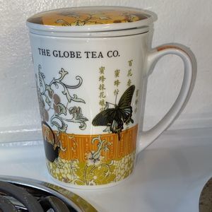 Globe Tea Co. Single Tea Cup Mug W/ Infuser & Lid 10 Oz Porcelain Paula Scaletta